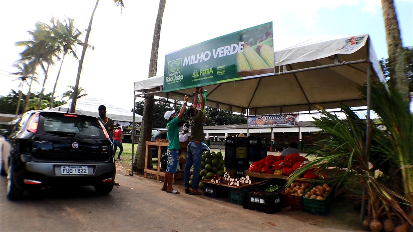 Instalado no Parque de Exposição João Martins da Silva, ao longo da BR-324, o Drive Thru de São João é o local mais seguro para as pessoas adquirirem produtos juninos sem exposição ao riscos de contrair o coronavírus Covid-19. No local, as pessoas encontram todos os produtos típicos da época, inclusive iguarias já preparadas, com preços bastante competitivos e com a vantagem de ninguém precisar descer do carro para ser atendido.