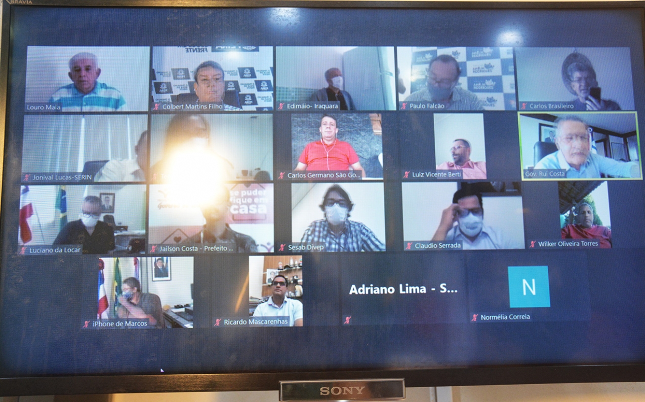 A adoção do Toque de Recolher em localidades que registram maiores índices de contaminação do novo coronavírus em Feira de Santana foi proposta pelo Governador Rui Costa em reunião por video-conferência com o prefeito Colbert Martins Filho na manhã desta quinta-feira, 09. A reunião online contou com a participação de vários outros gestores do estado da Bahia.