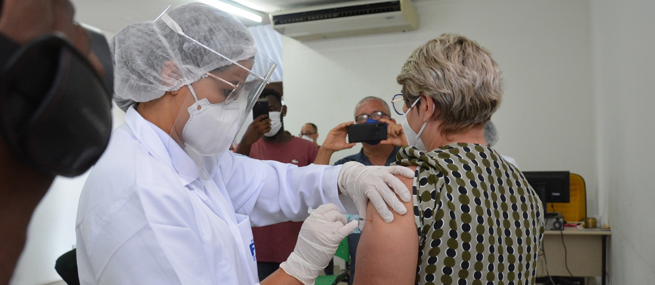 A primeira pessoa vacinada pela rede municipal de saúde contra a Covid-19 foi a enfermeira Francineth Lobo, de 52 anos. Ela atua no Hospital de Campanha, na linha de frente contra a doença. A profissional faz parte do grupo prioritário que receberá a imunização na primeira etapa da vacinação.